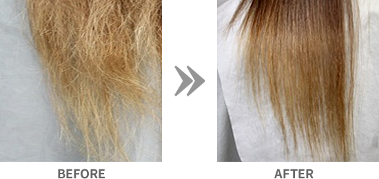 ドライヤーやヘアアイロンなどの熱に反応し、ミストが髪のキューティクルの凹凸部分に※毛髪補修成分が内側~外側まで浸透させダメージを補修してツヤのある髪に仕上がります。